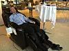 Friskonomen har spesialisert seg på massasjestoler for bruk i en hektisk arbeidsdag. Skal vi tro leverandøren reduserer jevnlig bruk av stolen sykefraværet på jobben. Rune Riktor fra CatalystOne tok seg like godt en liten pause i mellom foredragene.