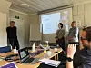 Hans Henrik Thune (rådmann), Cath Murphy (personalsjef og enhetsleder for Fellestjenesten), Gro-Kristin L. Svingen (enhetsleder for Helse og omsorg) og Rune Schanke Eikum (Tinkr) under en av fellesøktene da de jobbet med innovasjon og ledelse.