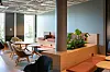 Det er ikke et spørsmål om åpent landskap eller cellekontor. Microsofts lokaler er begge deler og veldig mye mer. Her finner vi store møterom, mindre arbeidsrom, mingleområde, kaféområder, stillesoner, prosjektsoner, samarbeidsrom, lekerom. Kontorene veksler mellom åpen og lukket på en måte som gjøre det lett for medarbeiderne å koble egen energi med rett lokasjon.